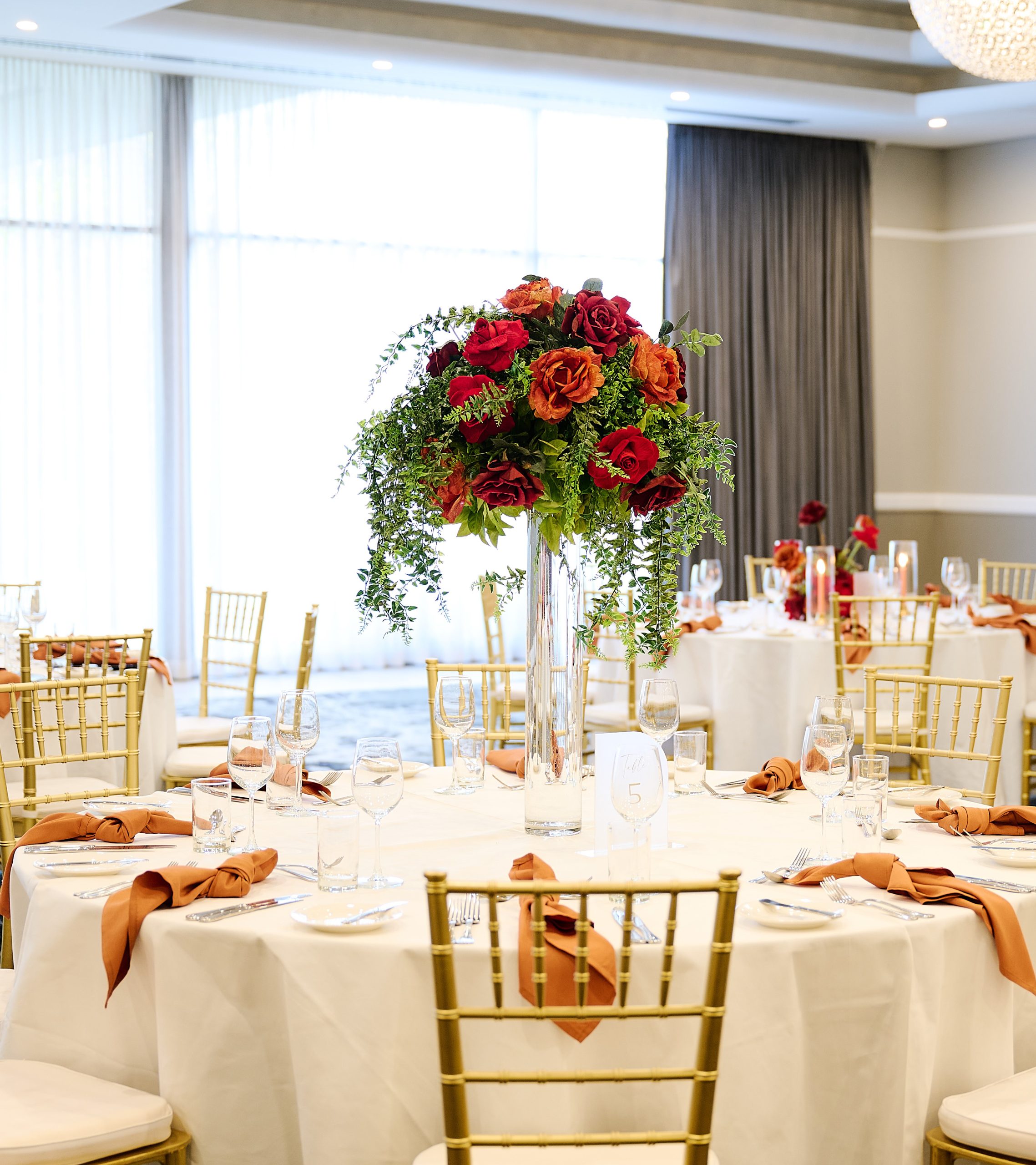 Tall cylinder vase fresh luxe foliage and blooms